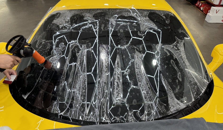 Windshield protection film (WPF) is a visibly transparent film applied to the exterior of a vehicle's windshield to provide protection against damage from road debris, rocks, and other hazards. Similar to paint protection film (PPF) for the vehicle's body, windshield protection film acts as a barrier to prevent chips, scratches, and cracks on the windshield.