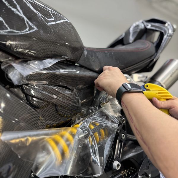 The same paint protection film that’s used on millions of cars can also be used to protect nearly all painted areas of your motorcycle. Applying this protection is the most affordable way to keep your bike in showroom condition by preventing chips, scratches, and stains from ruining your motorcycle’s appearance. We can apply PPF on individual areas or panels that are more heavily abused than others, such as the gas tank, front fairings and side bags.